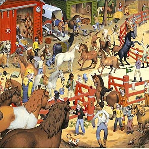 Układanka pokazuje różne rasy koni oraz przeróżne małe zwierzaki, jak gady, owady, ptaki oraz ssaki: koty i psy. Naokoło w białej ramce rozrysowane są różne przedmioty i zwierzęta, które znajdują się na ułożonych puzzlach, dzięki czemu można bawić się z dzieckiem w ich znajdywanie na obrazku. Aby urozmaicić zabawę można zagrać kto w ciągu 1 minuty znajdzie najwięcej przedmiotów na obrazku. Te wspaniałe puzzle wykonane zostały z grubej i bardzo wytrzymałej tektury i zapakowane w eleganckie, kolorowe pudełko.
