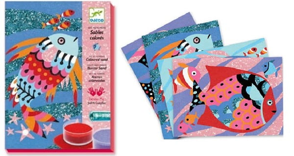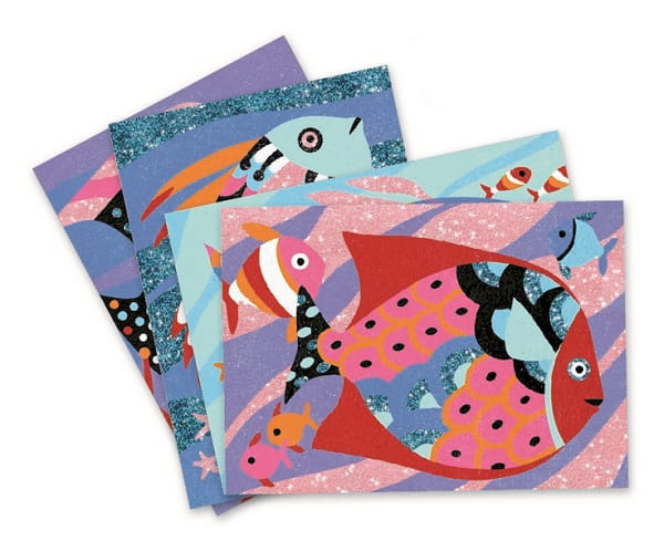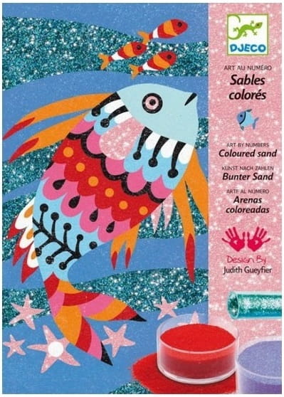 DJECO 08661 Zestaw artystyczny - Malowanie brokatem i piaskiem - Tęczowe Ryby