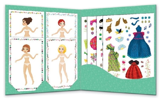 Dziewczynki uwielbiają się stroić i przebierać w różne sukienki. A może by tak wykorzystać ich hobby w kratywną i pomysłową zabawę?! Marka Djeco stworzyła dla takich małych kreatorek mody specjalną książeczkę z naklejkami! W zielonym zestawie "Moda" znajdziemy gotowe karty z postaciami modelek do ubrania za pomocą naklejek (wielokrotnego użycia). Dzięki nim możemy stworzyć cudowne zestawy strojów na różnych modelkach, z różnymi detalami i dodatkami. Co więcej, dziewczynka może w każdej chwili zmienić swój projekt, gdyż naklejki można łatwo odkleić i przekleić w nowe miejsce i zabawa nie ma końca! Wszystko zostało umieszczone w zielone grube etui, które będzie wspaniałym folderem na naklejki.