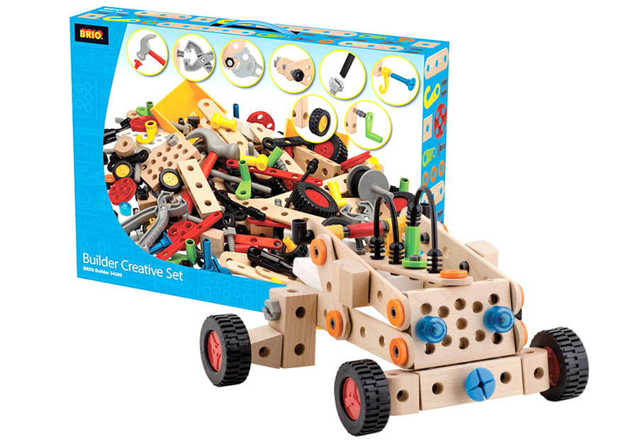 270 elementów, z których stworzysz pojazdy, roboty i wszelkie konstrukcje, które narodzą się w Twojej głowie. Do dyspozycji masz specjalistyczne narzędzia (klucz wielofunkcyjny, śrubokręt, szczypce i młotek) oraz części do skręcania - śrubki, rurki, haczyki, kółka, listewki i klocki z otworkami. Ponadto, komplet zawiera kilka zestawów kół samochodowych (czerwone i żółte). Elementy zestawu Brio są drewniane lub plastikowe. Odznaczają się wysoką jakością wykonania, są zupełnie bezpieczne oraz proste i intuicyjne w użyciu, dzięki czemu zabawka jest przeznaczona dla dzieci już od trzeciego roku życia. Majsterkowanie, budowanie, skręcanie i rozkręcanie to masa kreatywnej zabawy, która rozwija koordynację i zdolności manualne.