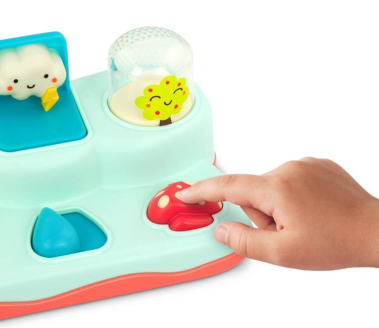 Konsola pogodowa marki B.Toys to zabawka dla maluszków, które poznają otaczający świat, samodzielnie odkrywając poszczególne jego elementy. Konsola jest jasnoniebieskiego koloru z pomarańczową podstawą, na której ulokowano łącznie 8 elementów, połączonych w pary - naciśnięcie jednego elementu z pary, wywołuje efekt przyczynowo-skutkowy u kolejnego. W ten sposób dzieciaki poprzez odkręcenie kwiatuszka zobaczą, jak z konsoli wyskakuje słoneczko. Gdy zostanie naciśnięty czerwony grzybek, na powierzchni pojawi się kubeczek z drzewkiem. Odkrywanie poszczególnych elementów zestawu stanowi ciekawe wyzwanie, szczególnie gdy całej zabawie towarzyszy ogrom frajdy i uśmiechu!
