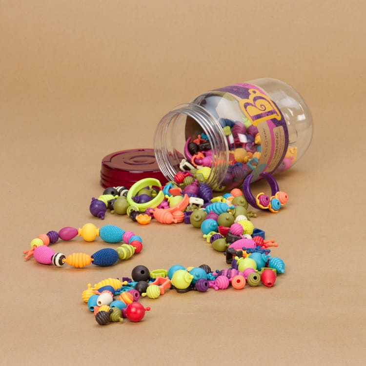 Z najnowszym zestawem koralików marki B.Toys stworzysz nietuzinkową biżuterię, która niewątpliwie wyróżni Cię z tłumu! Zamknięte w zakręcanym, plastikowym słoiczku korale o wielu fantazyjnych kształtach i barwach pozwolą na samodzielne wykonanie przepięknych ozdób. Koraliki te łączy się ze sobą w zupełnie niebanalny sposób - nie będzie nam potrzebny żaden sznurek. Wystarczy bowiem odpowiednie wypustki umieścić w specjalnych wgłębieniach, tworząc w ten sposób naszyjniki, bransoletki i wiele innych!