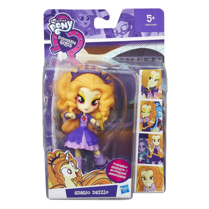 9 punktów artykulacji, dzięki którym możemy poruszać nią i pozować w dowolny sposób, odgrywając sceny z bajki. Adagio Dazzle jest liderką zespołu muzycznego - Dazzlings. Dziewczyna, która jest jednocześnie syreną potrafi pięknie śpiewać, ze względu na moc pobieraną przez jej magiczny amulet. W zestawie z figurką znajdziemy miniaturowy mikrofon - idealny dla kucykowej piosenkarki.