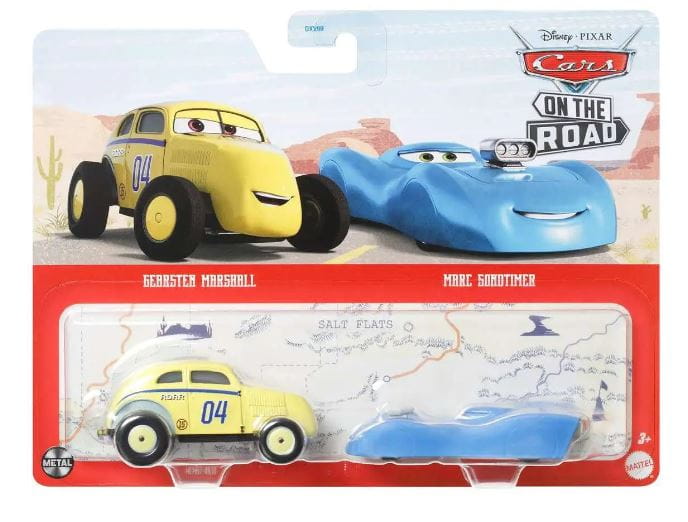 Dwupak pojazdów z bajki Cars to nie lada gratka dla wszystkich miłośników kultowej bajki, w której można obserwować najbardziej zaciekłe wyścigi i rywalizację między samochodowymi bohaterami. Zestaw samochodzików bardzo szczegółowo oddaje wygląd dwóch nieco mniej znanych postaci: Gearsten Marshall i Marca Sondtimera. Dzięki zestawowi maluchy mogą odgrywać wiele wspaniałych scenek pochodzących z filmu lub organizować zupełnie nowe przygody.