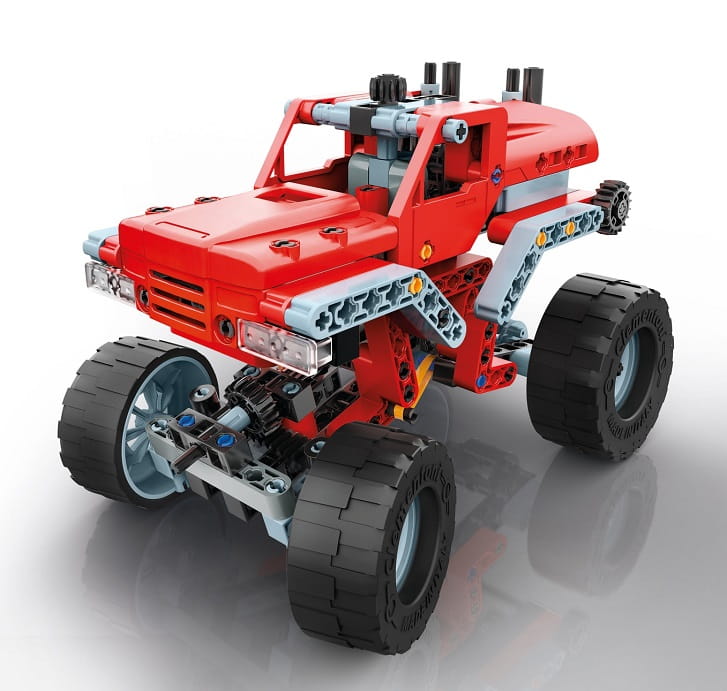 Zestaw z Monster Truckiem to gwarancja fantastycznej zabawy, która pozytywnie wpływa nie tylko na kreatywność, ale też na zdolności manualne oraz logiczne myślenie wszystkich kilkulatków - podczas składania poszczególnych elementów maluchy poznają zasadę działania dźwigni, przekładni zębatych, przekładni ślimakowej, przegubu cardana oraz mechanizmu różnicowego. Co ciekawe, Monster Trucka można w każdej chwili przebudować na zupełnie inny model - ilustrowana instrukcja przeprowadzi dzieciaki przez zbudowanie 3 modeli, zaś aplikacja umożliwi przebudowę na kolejne 7 innych pojazdów. Do domowej kolekcji może zatem dołączyć hot rod, quad, offroad racer, monster cross i wiele innych.