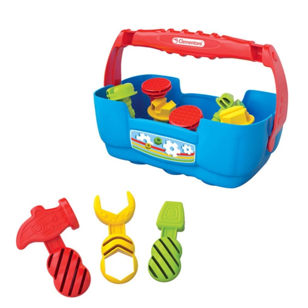 Majsterkowanie to super zabawa, która sprawia radość, rozwija i uczy! Nowy zestaw od Clementoni to zabawka dla maluszka już od 10-ego miesiąca życia. W środku znajdziemy walizkę z plastikowymi narzędziami i akcesoriami, którą zamienimy w stolik małego majsterkowicza. Lekkie i miękkie gadżety: klucz, młotek, śrubokręt oraz trzy śrubki są zupełnie bezpieczne dla dziecka. Na spodzie walizki - na blacie stolika znajdują się otwory, do których włożymy śrubki do przykręcenia. Narzędzia mają różny kolor, z walizka - stół wyposażona jest w czerwony uchwyt do przenoszenia.