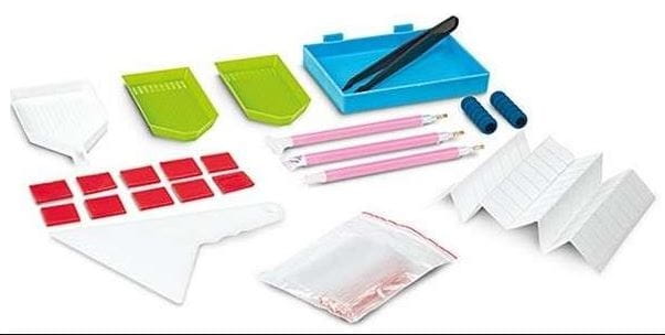 Zestaw Diamond Painting zawiera wszystko, co umożliwi sprawne układanie: