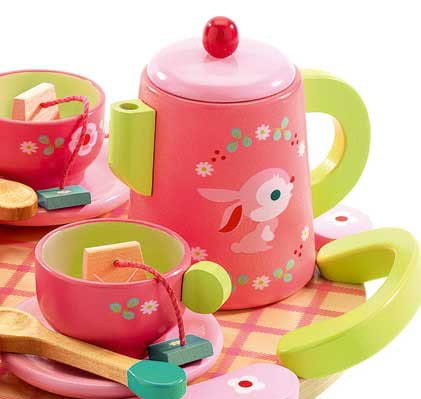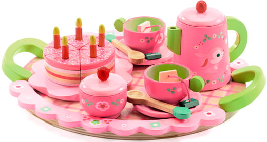 Urządzanie urodzin i oficjalnych spotkań przy herbacie podczas których dziewczynki mogą poczuć się jak damy i prawdziwe panie domu to dla nich wspaniała zabawa. Uczestników zabawy należy odpowiednio ugościć i podać stosowny poczęstunek - w tej roli sprawdzi się uroczy torcik z drewna. Możemy na nim umieścić świeczki, aby uczcić wielki dzień solenizantki! W zestawie znajdziemy drewnianą tacę z uchwytami, dzbanek do herbaty, cukiernicę, dwie filiżanki, tort urodzinowy ze świeczkami oraz drewniane torebki herbaty do zaparzania.