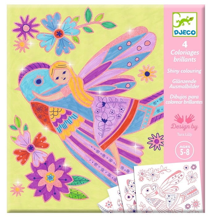 Kolorowanie przepięknych obrazków to jedno z ulubionych zajęć wszystkich maluszków. Najnowszy zestaw kolorowanek marki Djeco zawiera 4 szablony, przedstawiające obrazki z uroczymi wróżkami w roli głównej. Każda z nich ma śliczne, metaliczne wykończenie, a zadaniem dzieci jest nadanie im odpowiednich kolorów i barw, by wyglądały jeszcze piękniej!