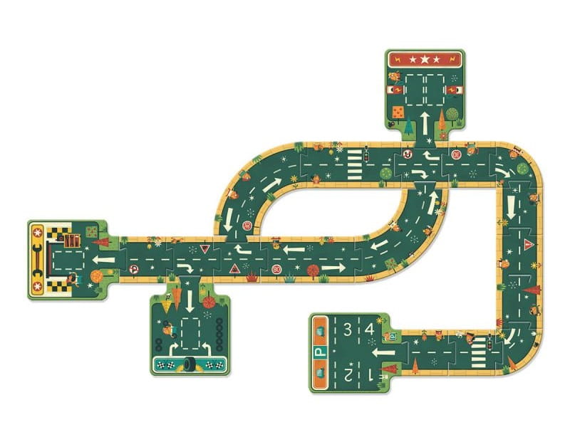 Puzzle tekturowe francuskiej marki Djeco staną się idealną bazą do odgrywania różnych scenek z udziałem ulubionych samochodzików - powstała kombinacja puzzli tworzy bowiem obrazek przedstawiający drogi i ulice, na których widnieją również znaki oraz dodatkowe elementy jak drzewka czy chodniki. Opakowanie skrywa wewnątrz 21 puzzli wykonanych z wytrzymałej tektury, na której nadrukowane obrazki odznaczają się wyjątkowo żywymi i wyrazistymi kolorami. Co ciekawe, puzzle można ułożyć w kilku różnych konfiguracjach, tworząc całkowicie odmienne trasy dla samochodzików i innych ulubionych pojazdów. W zależności od wybranej wersji, gotowe układanki mogą osiągnąć nawet 117 cm długości, co daje bardzo dużo możliwości fantastycznej zabawy! Zachowaj szczególną ostrożność na przejściu dla pieszych, kieruj się znakami informacyjnymi i nie przekraczaj prędkości!