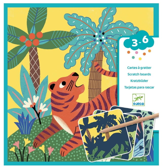Wydrapywanka Djeco z dzikimi zwierzątkami przeznaczona jest już dla dzieci powyżej 3. roku życia, a ilustracje są nieco prostsze niż w klasycznych zestawach tego typu.