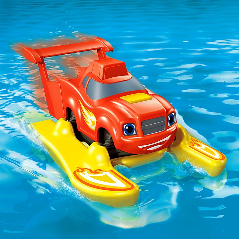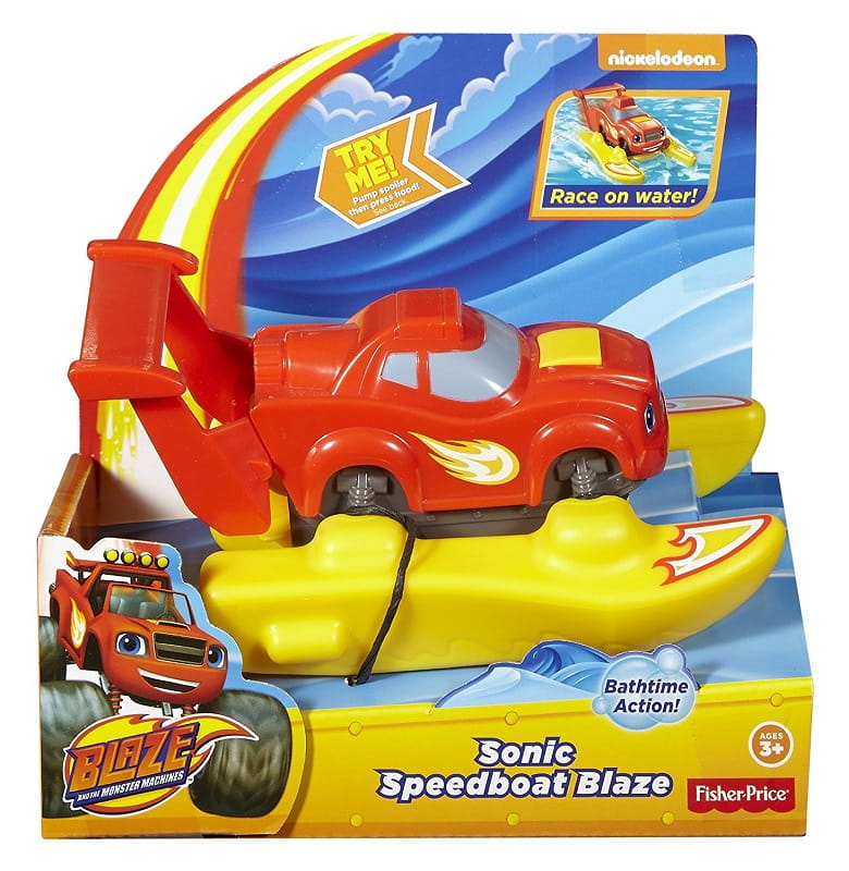 Blaze to bohater znany z serialu animowanego dla dzieci Blaze i mega maszyny. To sympatyczny i nieustraszony monster truck w kolorze czerwonym, który świetnie radzi sobie w trudnym i niebezpiecznym terenie. W serii zabawek Blaze od firmy Fisher Price znajdziemy naszego bohatera, który zamienił się w motorówkę! Zamiast wielkich, charakterystycznych kół, Blaze został wyposażony w żółte narty wodne, dzięki którym może pływać! Po trzykrotnym pociągnięciu czerwonego spoilera w dół i wciśnięciu żółtego przycisku na masce samochodu, Blaze zaczyna mknąć po wodnej tafli, wydając z siebie charakterystyczny dźwięk. Naciskanie spoilera reguluje także szybkość Blaze;rsquo;a, a tym samym trasę, którą ma pokonać.