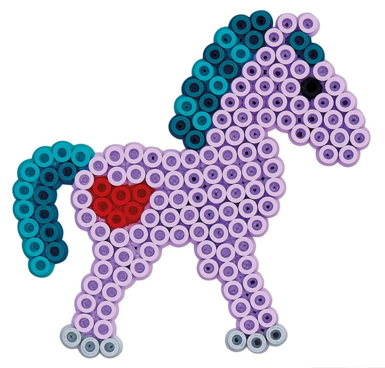 Zestaw koralików do prasowania ukryty w woreczku zawiera wszystko, co niezbędne do samodzielnego ułożenia wspaniałych wzorów. Opakowanie skrywa łącznie 3000 sztuk kolorowych koralików w rozmiarze Midi, które w przeważającej części są koloru różowego i pastelowego - takie zestawienie idealnie sprawdzi się do ułożenia podkładek w kształtach: konik, mały kwiatek, królewna i serduszko, jakie zostały dołączone do zestawu. Zestaw w woreczku uzupełni domową kolekcję koralików i zainspiruje dzieciaki do tworzenia coraz to ciekawszych układanek.