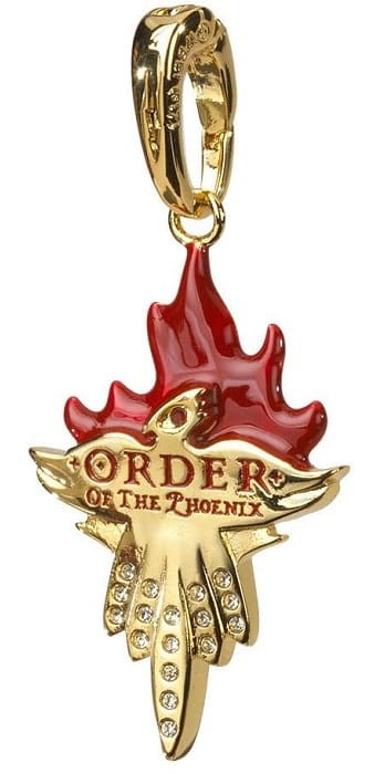 Przywieszka w kształcie Feniksa Fawkesa, wyłaniającego się z płomieni, którą można przypiąć do ulubionej bransoletki. Fawkes to ptak, należący do Dumbledore'a, który przewodniczył również powstałemu Zakonowi Feniksa, walczącemu z Lordem Voldemortem. Przywieszka jest złotego koloru, a jej długość wynosi ok. 2,5 cm.