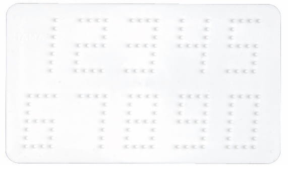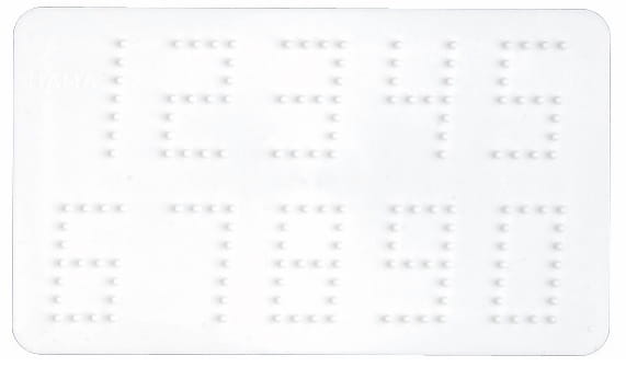 Podkładka do koralików HAMA Midi. Szablon jest prostokątnego kształtu i na całej powierzchni zawiera wypustki w kształcie cyferek 0-9.