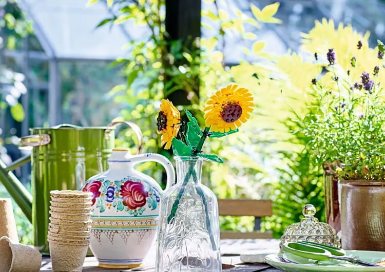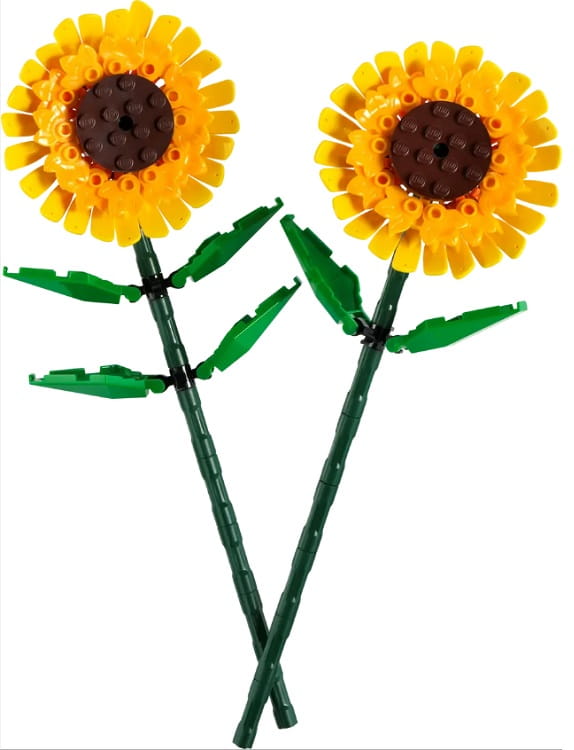 Słoneczniki zbudowane z klocków LEGO® staną się wyjątkową dekoracją pokoju, salony czy gabinetu! Kwiaty złożone z duńskich elementów wyglądają nadzwyczaj realistycznie - gotowe słoneczniki mierzą ok. 25 cm długości; mają brązowy środek, rzędy żółtych płatków i opierają się na zielonych łodygach, których długość można dowolnie regulować. Słoneczniki w takiej wersji staną się idealnym powiększeniem innych bukietów LEGO®, ale też pięknie będą prezentowały się jako osobna dekoracja w wazonie.