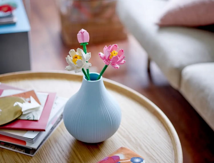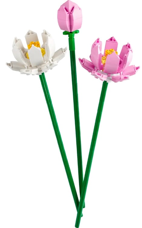 Przepiękne, pastelowe kwiaty lotusu zbudowane z klocków LEGO® idealnie wkomponują się do każdego wnętrza! Najnowszy zestaw klocków składa się z 220 elementów i umożliwia zbudowanie trzech kwiatów w kolorach różowym i białym. Każdy kwiat mierzy ok. 30 cm długości i opiera się na zielonej łodydze. Kwiaty lotosu posłużą zarówno jako oddzielna dekoracja, ale też jako uzupełnienie pozostałych bukietów LEGO®.