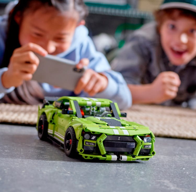 Opakowanie zawiera 544 klocki, z którymi powinny poradzić sobie dzieci powyżej 9. roku życia. Powstały model ma 27 cm długości, a cała konstrukcja odznacza się świetnie zachowanymi szczegółami wyglądu - konstrukcja Forda Mustanga jest czarnego koloru i świetnie współgra z zieloną karoserią oraz widocznymi elementami silnika. Co ważne, auto posiada wbudowany napęd typu pull back, na który składają się aż dwa silniki, dzięki czemu dzieci będą mogły szybko rozpędzić pojazd.