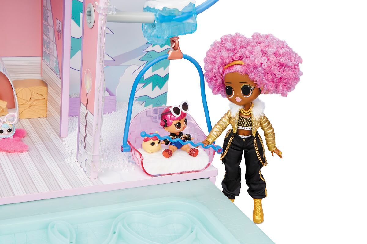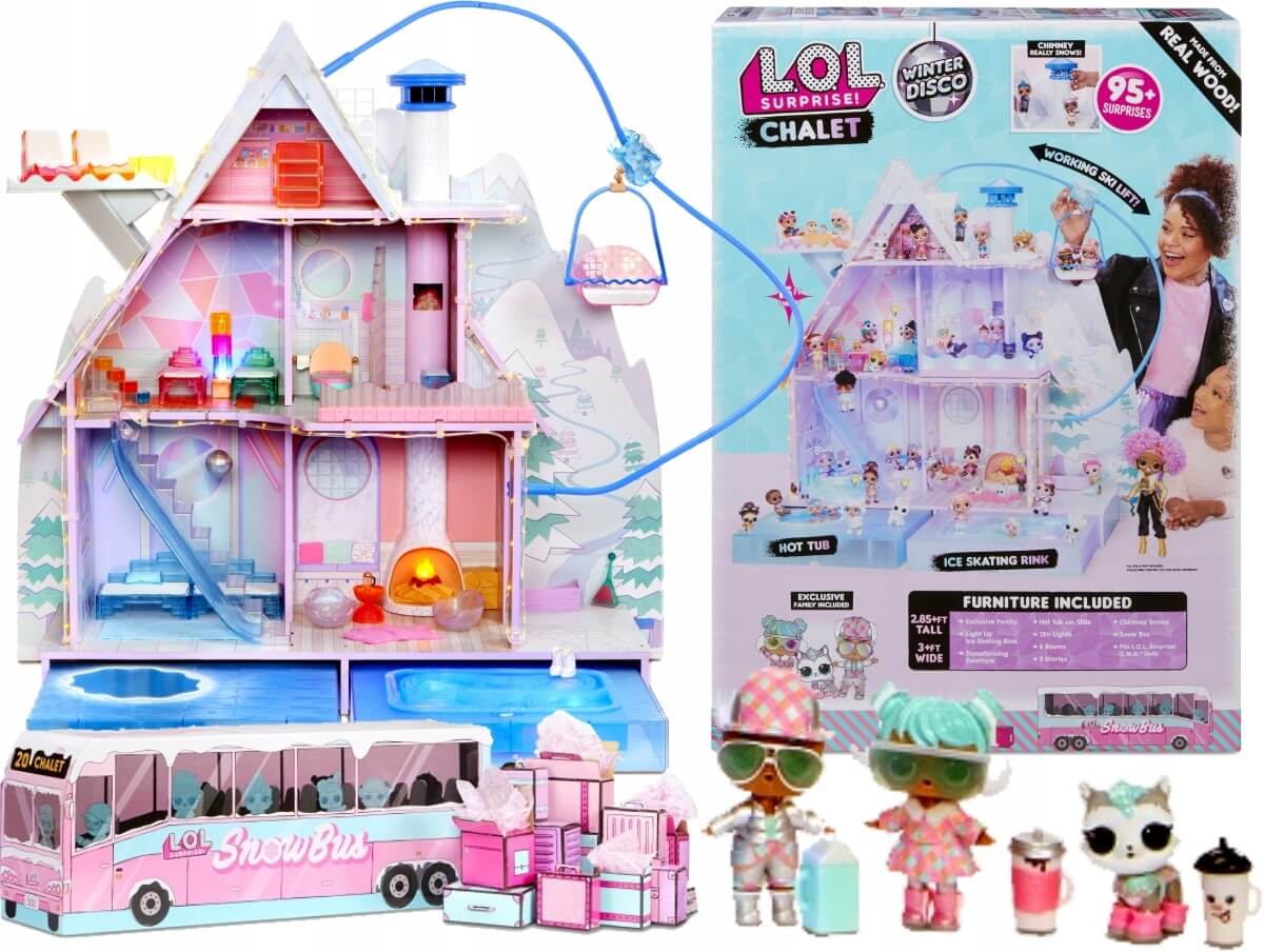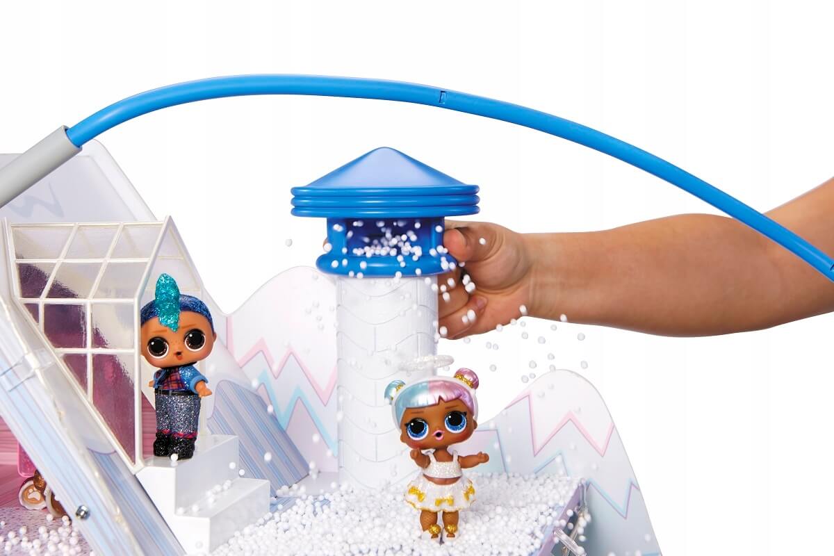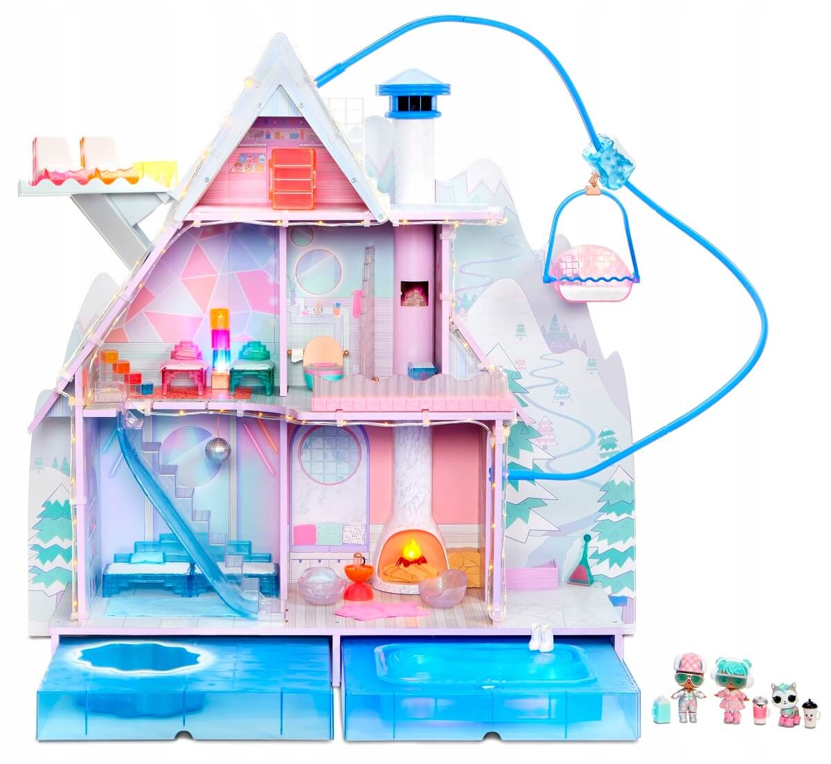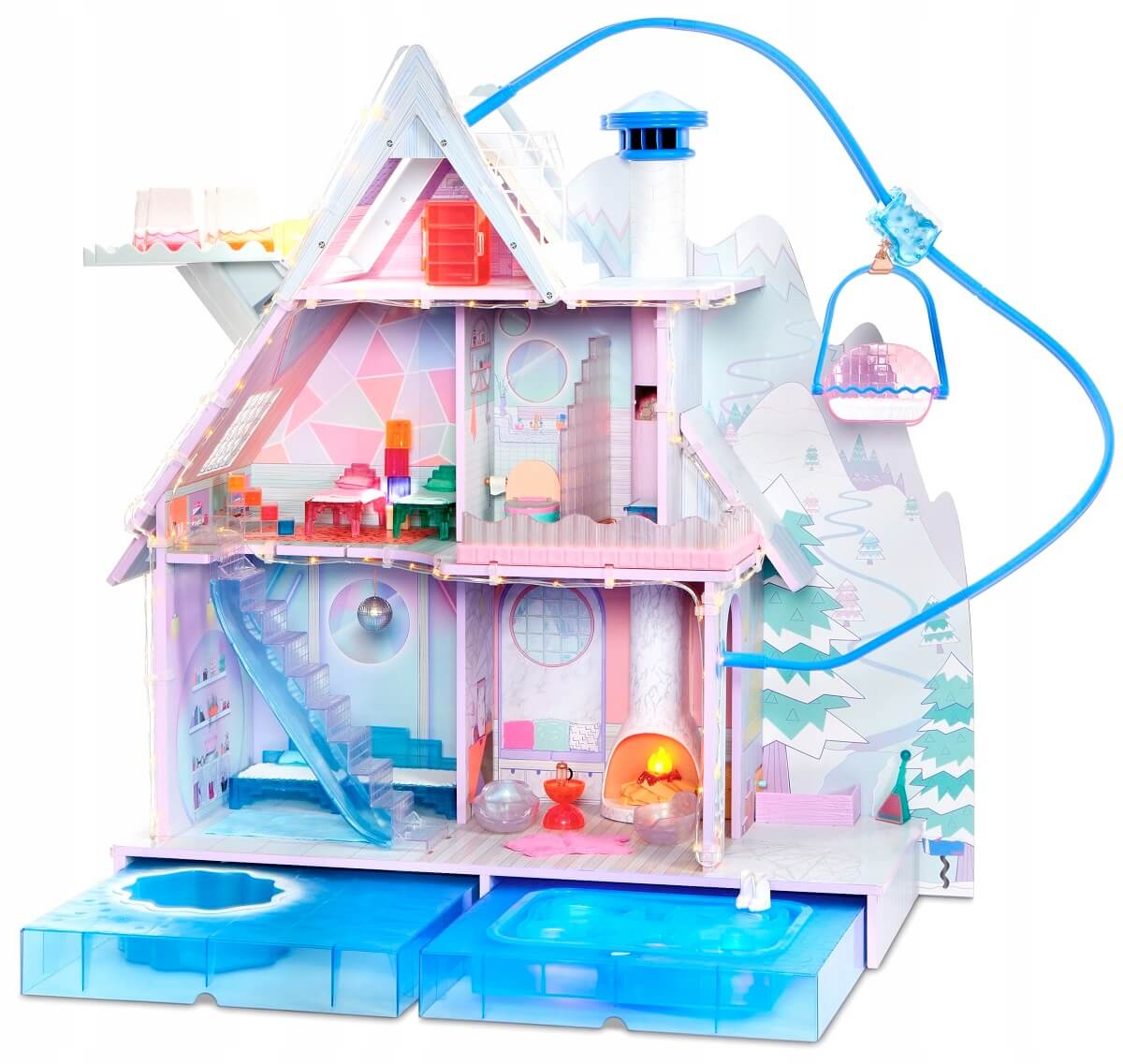 Zimowa posiadłość LOL Surprise! Winter Disco Chalet to ekskluzywny kurort dla laleczek z serii LOL Surprise i nie tylko. 3 - poziomowy domek wykonano z drewna. Zawiera 6 pomieszczeń i mnóstwo atrakcji. Do dyspozycji fanki serii przeznaczono parter, piętro i poddasze, z którego można wyjść na dach, by tarzać się w śniegu wydobywającym się z biało-niebieskiego komina.