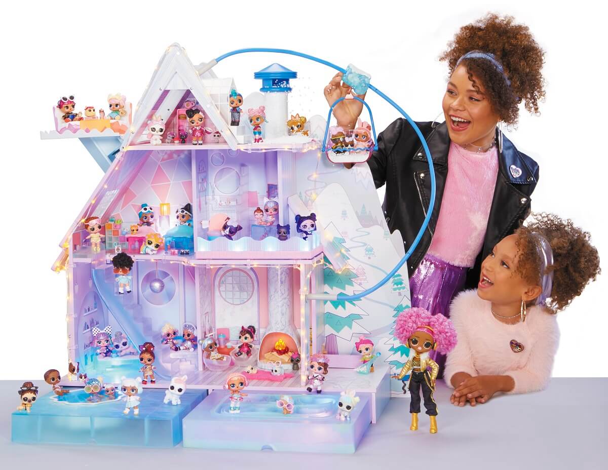 Mebelki zawarte w zestawie zmieniają kształt, a toaleta w łazience wydaje prawdziwy dźwięk spłukiwanej wody. Wśród zawartości jest także Wyjątkowa Rodzinka (3 figurki), której nie kupisz poza zestawem. W sumie do odpakowania czeka ponad 95 niespodzianek w kartonowych paczkach, w tym śnieżny bus! Interaktywna posiadłość z pewnością umili czas fance laleczek LOL Surprise!. Zapowiada się wiele godzin zimowej zabawy.