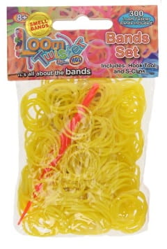 Zestaw składa się z 300 sztuk gumek, szydełka i klipsów typu S. Gumki w kolorze ŻÓŁTYM. Zestaw dedykowany dzieciom powyżej 8. roku życia.