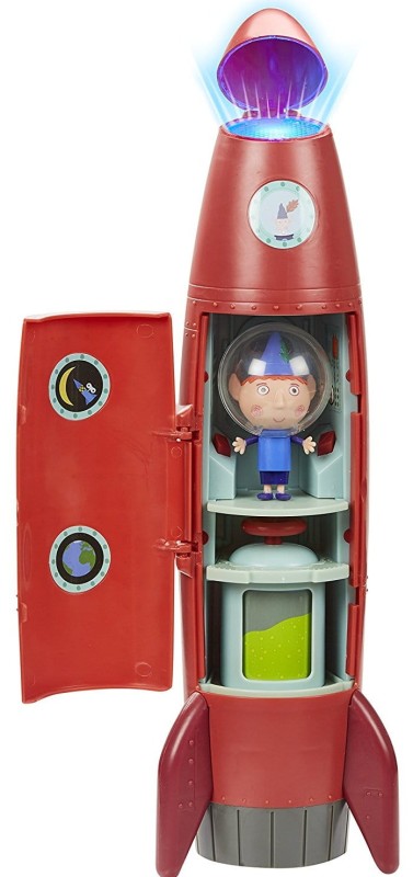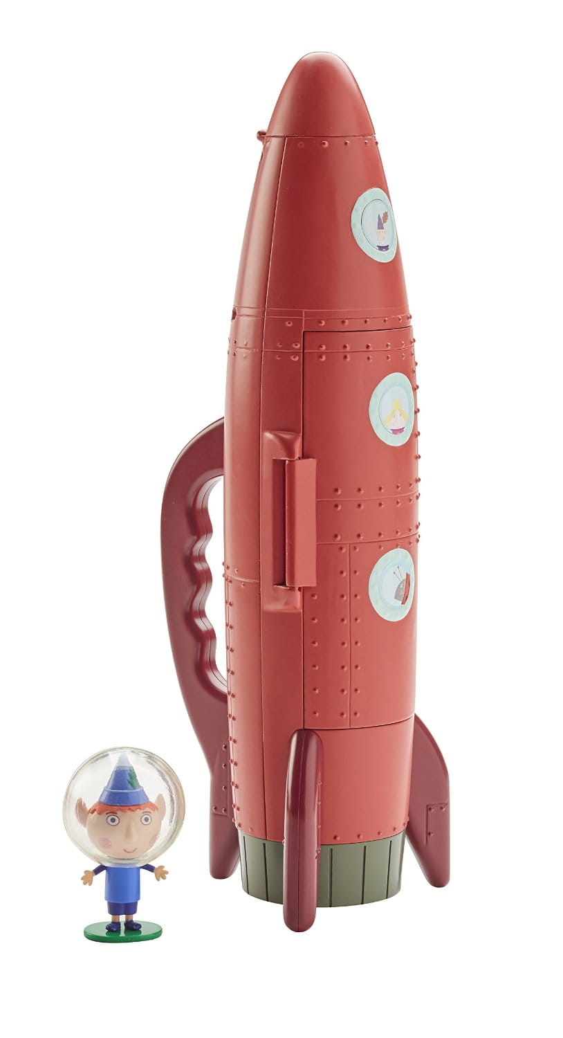 Czerwona rakieta ma kokpit z miejscem na figurkę elfa Bena, a w dolnej kondygnacji znajduje się obrotowy pojemnik z kosmicznym, zielonym paliwem. Gdy otworzymy czubek rakiety i przyciśniemy odpowiednie guziki w kokpicie, uruchomimy niebieskie światełka. Usłyszymy także odgłos startowania i lądowania rakiety oraz kilka fraz z bajki (w języku angielskim). W zestawie znajduje się także figurka elfa Bena w niebieskim ubranku, stożkowej czapce i hełmie kosmonauty.