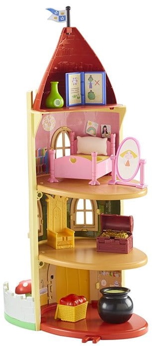 Księżniczka Holly mieszka w zamkowej wieży. Do swojej dyspozycji ma aż trzy piętra. Na parterze zazwyczaj ćwiczy zaklęcia. Tutaj znajduje się kuchnia, skrzynia z przyborami i magicznymi przedmiotami oraz wielki kociołek. Na pierwszym piętrze spędza sporo czasu. Tutaj stoi złoty tron oraz duże, owalne, różowe lustro, w którym może się przeglądać. Czy ono także jest magiczne? Na górze mieści się sypialnia jasnowłosej księżniczki - wróżki. Pokój jest świetnie wyposażony - Holly może się wygodnie rozłożyć w różowym łóżeczku. Obok niego stoi duża skrzynia na gadżety, a wieczorami wróżka uczy się nowych zaklęć z wielkiej, niebieskiej księgi. Zamkowa wieża Holly jest otwarta. Do zestawu dołączono czerwony daszek z chorągiewką, którym można przykryć mieszkanko.