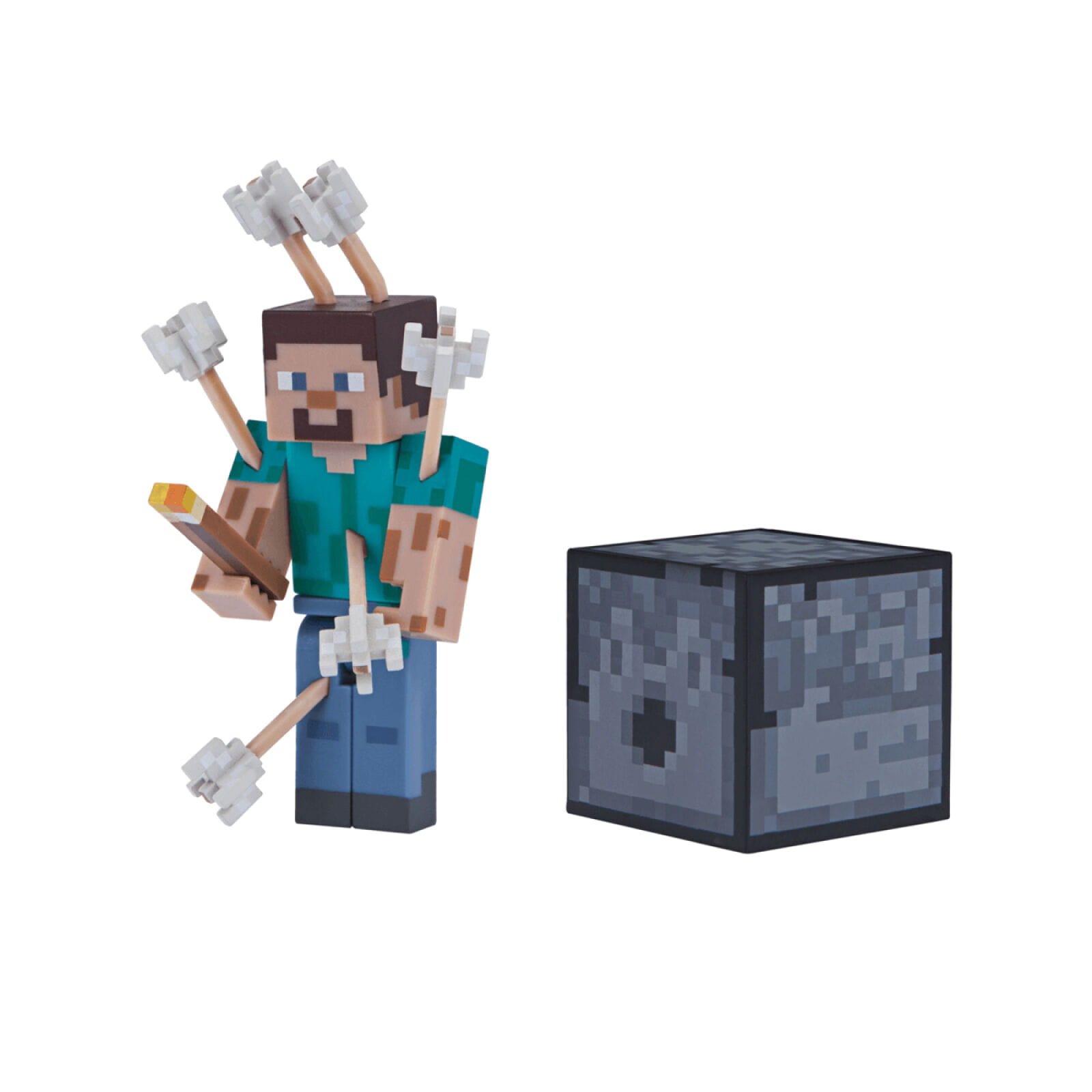 ma brązowe włosy, a ciało postaci (podobnie jak cały świat gry) zbudowane jest z malutkich sześcianików. Wcielając się w Steve;rsquo;a, gracz przemierza świat (w tym różne biomy) w poszukiwaniu surowców, które następnie przetwarza na niezbędne przedmioty i materiały. Gracze hodują także zwierzęta, budują domy i zagrody, a także walczą z niebezpiecznymi stworami - mobami. Figurka Steve;rsquo;a od marki Mojang to produkt licencyjny. Zabawka wygląda dokładnie tak samo, jak jej wirtualny odpowiednik. Figurka jest „przeszyta” strzałami Szkieleta, a do zestawu dołączono tematyczne dodatki.