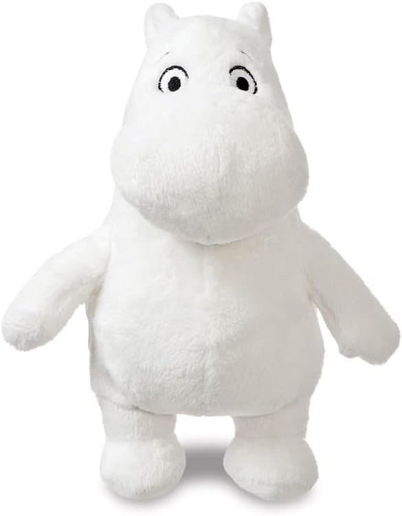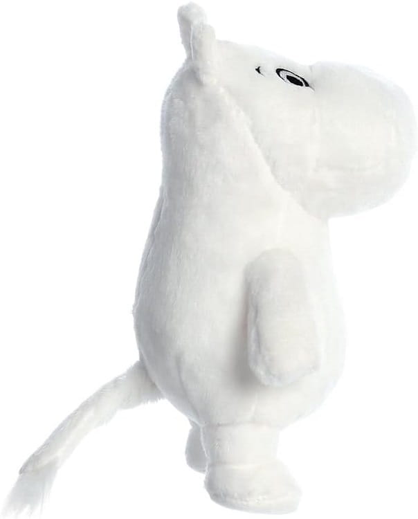 Maskotka firmy Aurora przedstawia Muminka w wersji stojącej. Pluszak jest oczywiście białego koloru i posiada zachowane wszystkie charakterystyczne cechy wyglądu, dzięki czemu doskonale oddaje wygląd bajkowego bohatera. Pluszowy Muminek mierzy ok. 17 cm wysokości i wykonany został z mięciutkich materiałów najwyższej jakości.