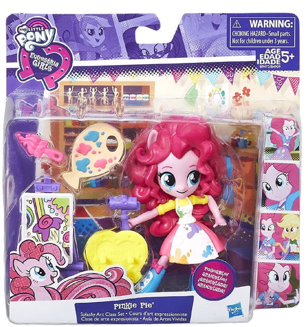 Urocze kucyki z Ponyville przeniosły się z magicznego świata zamków i czarów prosto do Liceum w Canterlot. Za pomocą Magicznego Lustra, Pinkie Pie i jej przyjaciółki przeszły niesamowitą transformację, podczas której z tęczowych koników przemieniły się w przebojowe dziewczyny! Dołącz do Pinkie Pie z nowymi zabawkami od Hasbro i przeżywaj szalone, szkolne przygody!
