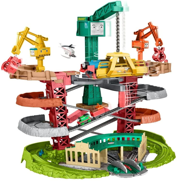 Linia Trackmaster to tory, pojazdy i dodatki wykonane z plastiku. Trakcja kolejowa ma szary kolor,a same tory są bardzo dobrze wyprofilowane. Wysoka jakość tworzywa sztucznego, z którego powstają oraz jego elastyczność to gwarancja sprawnej jazdy pociągów, nawet na zakrętach czy podwyższeniach. Produkty z tej serii to zestawy torów (proste, zakręty, rozjazdy), zestawy tematyczne z dodatkowymi akcesoriami oraz lokomotywy z napędem na baterie. Przedstawiają głównych bohaterów serialu animowanego i filmów pełnometrażowych oraz doskonale ich odwzorowują. Pociągi są także wyposażone w dodatkowe wagoniki (osobowe, towarowe, z maszynami) połączone z lokomotywą za pomocą plastikowych zaczepów. Ząbkowane koła i unikalna konstrukcja zabawek sprawiają, że pociągi Trackmaster stabilnie poruszają się po torach, dzięki czemu możemy zbudować nawet bardziej skomplikowane trakcje z licznymi utrudnieniami, które będą dodatkową atrakcją podczas zabawy!