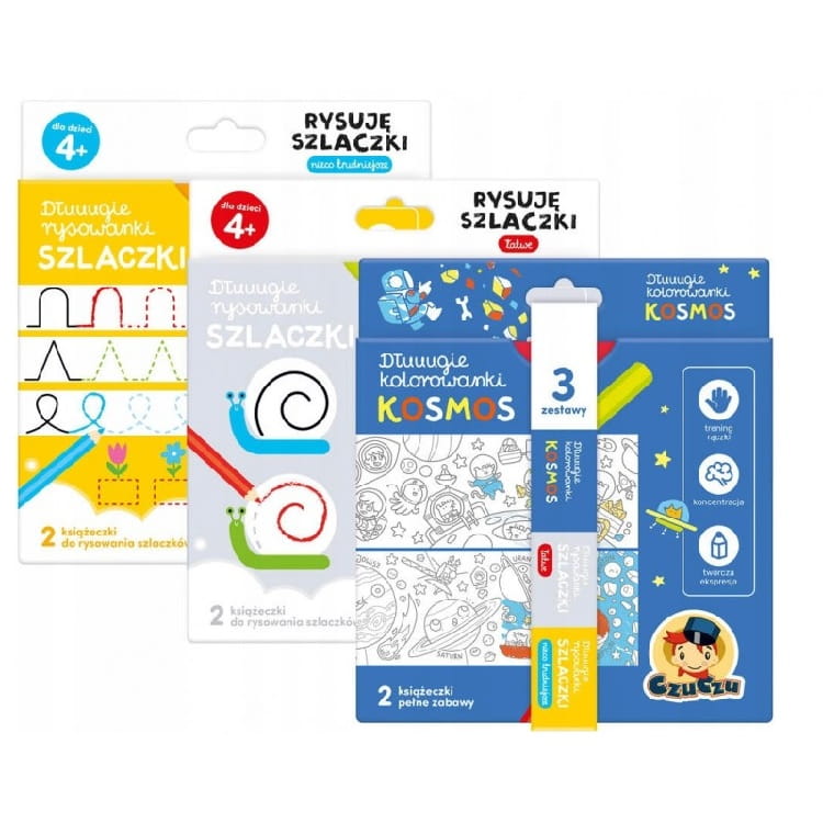 Często możemy zaobserwować, że już nawet kilkumiesięczne dzieci odczuwają potrzebę rysowania czy malowania. Zazwyczaj przekonujemy się o tym, gdy ze zgrozą zauważamy arcydzieła naszych dzieci na ścianie, biurku czy na ważnych dokumentach. Zajęcia plastyczne doskonale rozwijają zdolności motoryczne, manualne i koordynacyjne maluchów. Kształtują także wyobraźnię, również przestrzenną. Sprawiają dzieciom przyjemność, uspokajają i poprawiają koncentrację. Aby jednak dziecko nie zniechęciło się do rysowania czy malowania, należy wspomóc się profesjonalnymi zestawami kolorowanek, dostosowanymi do wieku i poziomu rozwoju dziecka. CzuCzu proponuje wspólną naukę w Małej Akademii. W serii stworzono m.in. zestaw Kolory, który zachęca dziecko powyżej 18 miesiąca życia do podjęcia pierwszych prób kolorowania. W zestawie znajduje się książeczka do kolorowania z bardzo prostymi, schematycznymi ilustracjami zwierzątek, owoców i rzeczy (jabłko, samochód, żabka, kot, mysz, gruszka itp.) oraz podwójne puzzle. Jeden z nich przedstawia rzecz lub zwierzę, a drugi ma odpowiednio dopasowany kolor, który wyróżnia się na rysunku. Zadaniem malucha jest dopasowanie właściwego koloru do ilustracji. Zabawa jest zatem dwupoziomowa – kolorowanie i układanie puzzli to dwie różne aktywności, które wpływają na różne aspekty rozwoju dziecka.