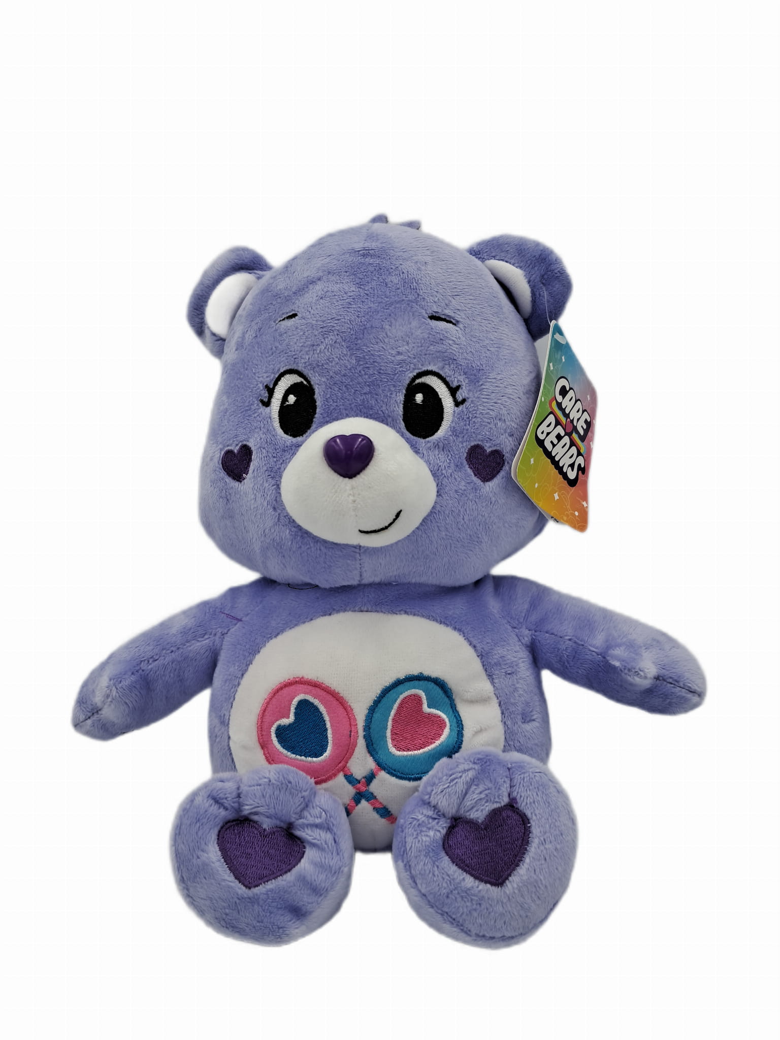 Share Bear, fioletowa misia, to słodka przytulanka znana z bajki o Troskliwych Misiach, grupie przyjaznych futrzaków dbających o dzieci, które akurat potrzebują ich pomocy. Futerko Share Bear ma uspokajający, fioletowy kolor, a na jego brzuszku widać symbol znany z bajki - dwa lizaki z sercami. Misia ma czarne oczka i malutki fioletowy nosek w kształcie serduszka. Mocno się do niej przytul za każdym razem, gdy będziesz mieć problem, jej obecność na pewno ci pomoże!