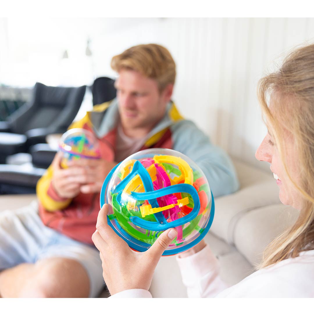 Niezwykła gra logiczna 3D - Labirynt Addict a ball to wiele godzin niekończącej się, bardzo wciągającej zabawy! W przeźroczystej kuli znajduje się szereg torów i przeszkód tworzących labirynt, przez który należy przeprowadzić mała metalową kulkę. Aby to zrobić należy obracać i skręcać przeźroczystą kulą w każdym kierunku. Labirynt składa się z 100 etapów, które należy przejść w ustalonej kolejności. Wydaje się, że to łatwizna, prawda? Nic bardziej mylnego! Przy każdym obrocie, czy przekręceniu kuli mała kuleczka może wypaść z toru i trzeba będzie zaczynać wszystko od początku!