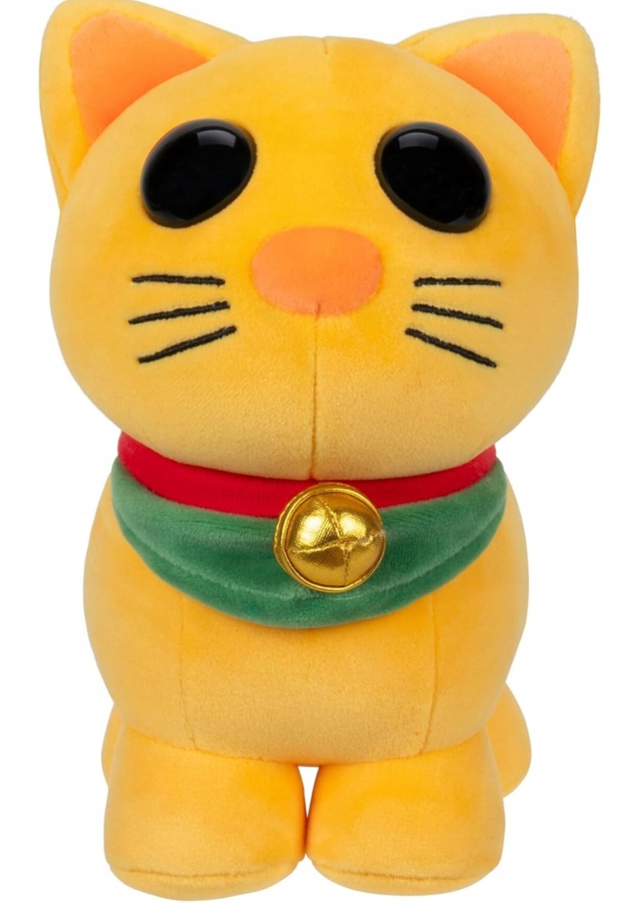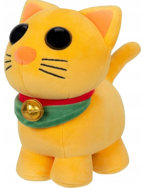 Maskotka z gry Adopt Me! przedstawia kotka Maneki Neko - jest żółtego koloru z czarnymi dużymi oczkami. Dodatkowo kotem na charakterystyczną brożę z dzwoneczkiem. Pluszak jest niezwykle mięciutki i sprawdzi się dla wszystkich miłośników popularnej gry komputerowej.