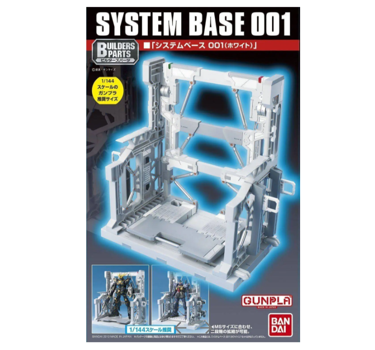 Modele Gunpla posiadają także różne akcesoria jak tarcze, efekty specjalne czy podstawki. Action Base BP System Base to biała podstawka, dzięki której można wyeksponować złożony model Gundam w oryginalny sposób.