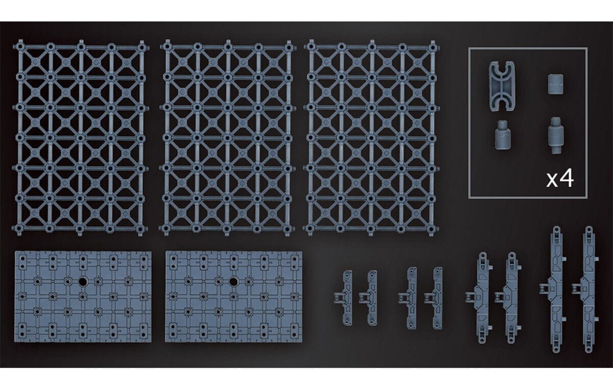 Modele Gunpla posiadają także różne akcesoria jak tarcze, efekty specjalne czy podstawki. Scene Base 7 Black to czarna podstawka, dzięki której można wyeksponować złożony model Gundam w oryginalny sposób.