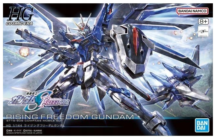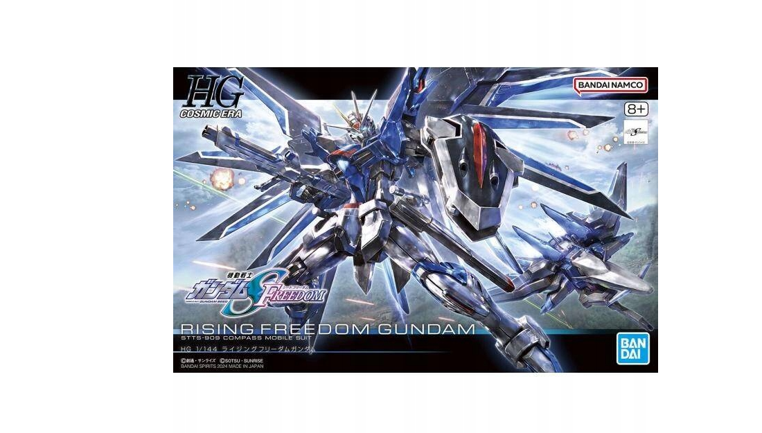 Model HG1/144 Rising Freedom Gundam to nie lada gratka dla średniozaawansowanych użytkowników. Model składa się z ponad 150 załączonych elementów, a gotowa konstrukcja w skali 1:144 przedstawia bohatera z zachowaniem absolutnie wszystkich cech wyglądu. Dzięki dołączonym akcesoriom, a także możliwości poruszania poszczególnymi elementami figurki, powstała postać stanie się ciekawą ozdobą pokoju każdego modelarza. Zestaw dedykowany jest dorosłym i młodzieży powyżej 14. roku życia.