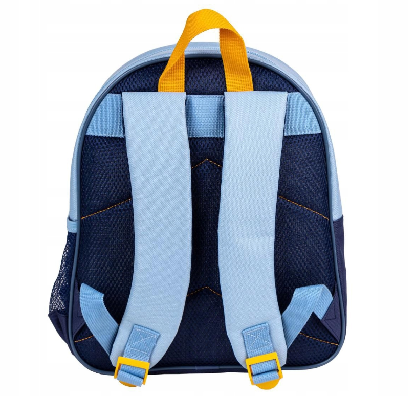 Plecak z popularnym bohaterką o imieniu Bluey to idealne akcesorium dla wszystkich dzieciaków, które właśnie wyruszają do szkoły. Pojemny plecak zawiera jedną większą komorę, która pomieści niezbędne przedmioty szkolne a dodatkowo mniejszą kieszeń z przodu, która idealnie posłuży do przechowywania piórnika czy śniadaniówki. Z boku znajduje się kieszeń z siatki na bidon Plecak jest błękitny i posiada doszyte uszka, przez co plecak wygląda jak Bluey!