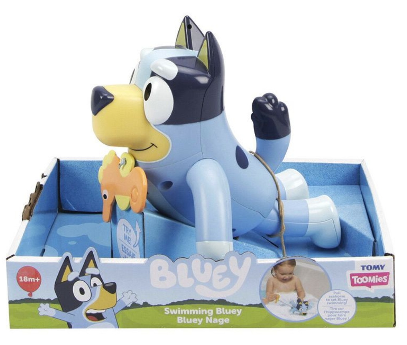 Wodna zabawka do kąpieli i basenu to interaktywna figurka inspirowana popularnym serialem telewizyjnym dla dzieci- Bluey. Dzięki niej pływanie w wannie lub dziecięcym basenie staje się jeszcze bardziej ekscytujące! Wystarczy, że dzieci pociągną za sznurek przyczepiony do konika morskiego, a jego ramiona zaczną się kręcić, wprawiając pieska w ruch. Bluey może pływać zarówno kraulem, jak i stylem grzbietowym, w zależności od tego, jak go ułożysz w wodzie.