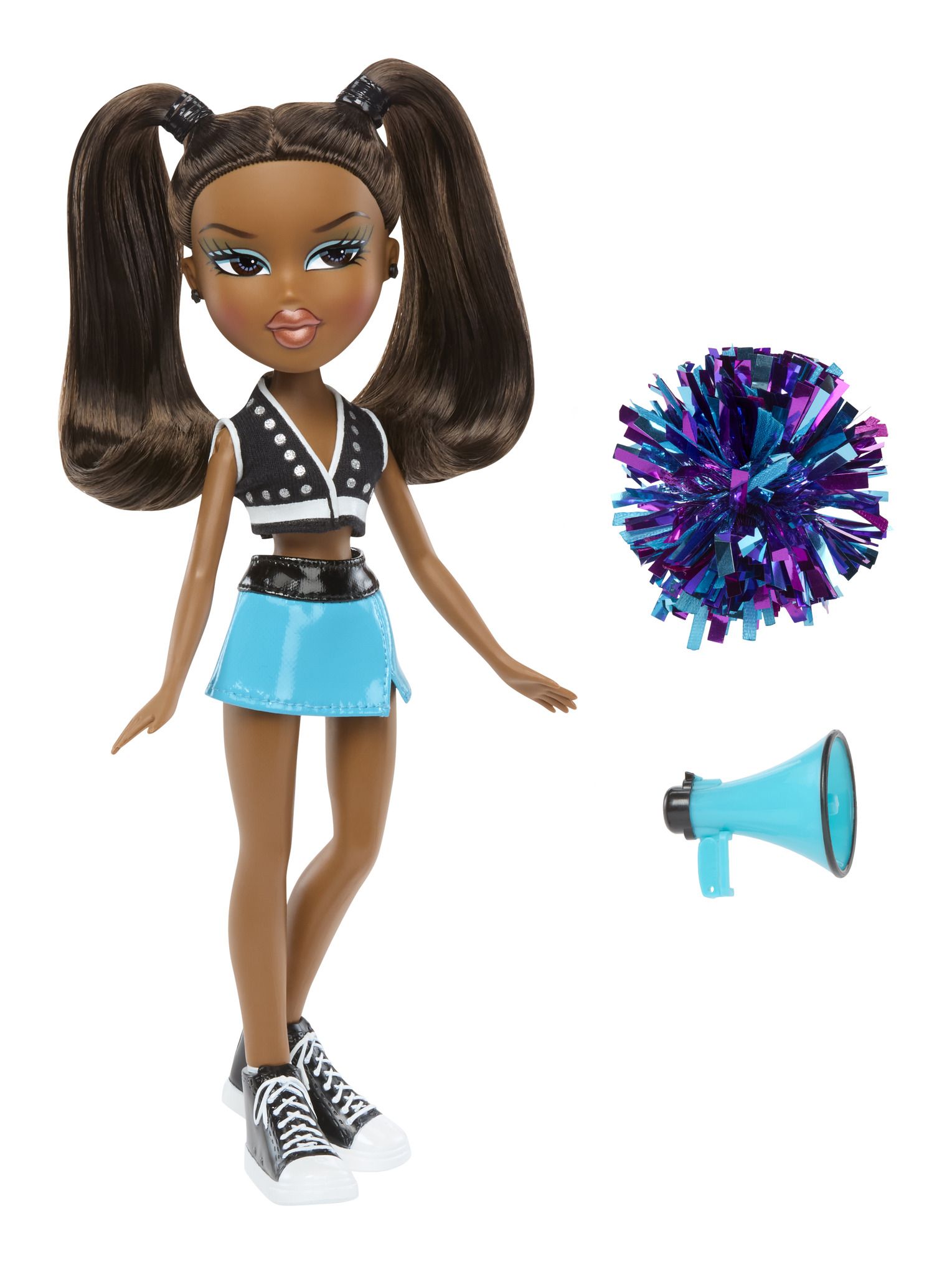 Lalka Sasha to tancerka z krwi i kości, która swoimi występami uświetnia wszystkie wydarzenia sportowe, zwłaszcza że jako cheerleaderka ma spore grono fanów. Sasha to ciemnoskóra dziewczyna z ciemnymi włosami, upiętymi w dwa kucyki; nosi niebieską spódniczkę, krótki top w biało-czarnym kolorze i sportowe trampki. Do zestawu dołączono kolorowy pompon i megafon.