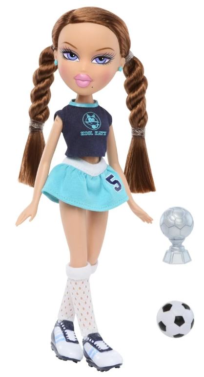 Lalka Roxxi uwielbia grać w piłkę nożną i zawsze zdobywa gole dla swojej drużyny. Ta urocza dziewczyna ma na sobie niebieską spódniczkę, krótką koszulkę w granatowym kolorze, podkolanówki i sportowe buty. Długie, brązowe włosy zostały upięte w dwa kucyki. Do zestawu dołączono także piłkę oraz srebrny puchar.