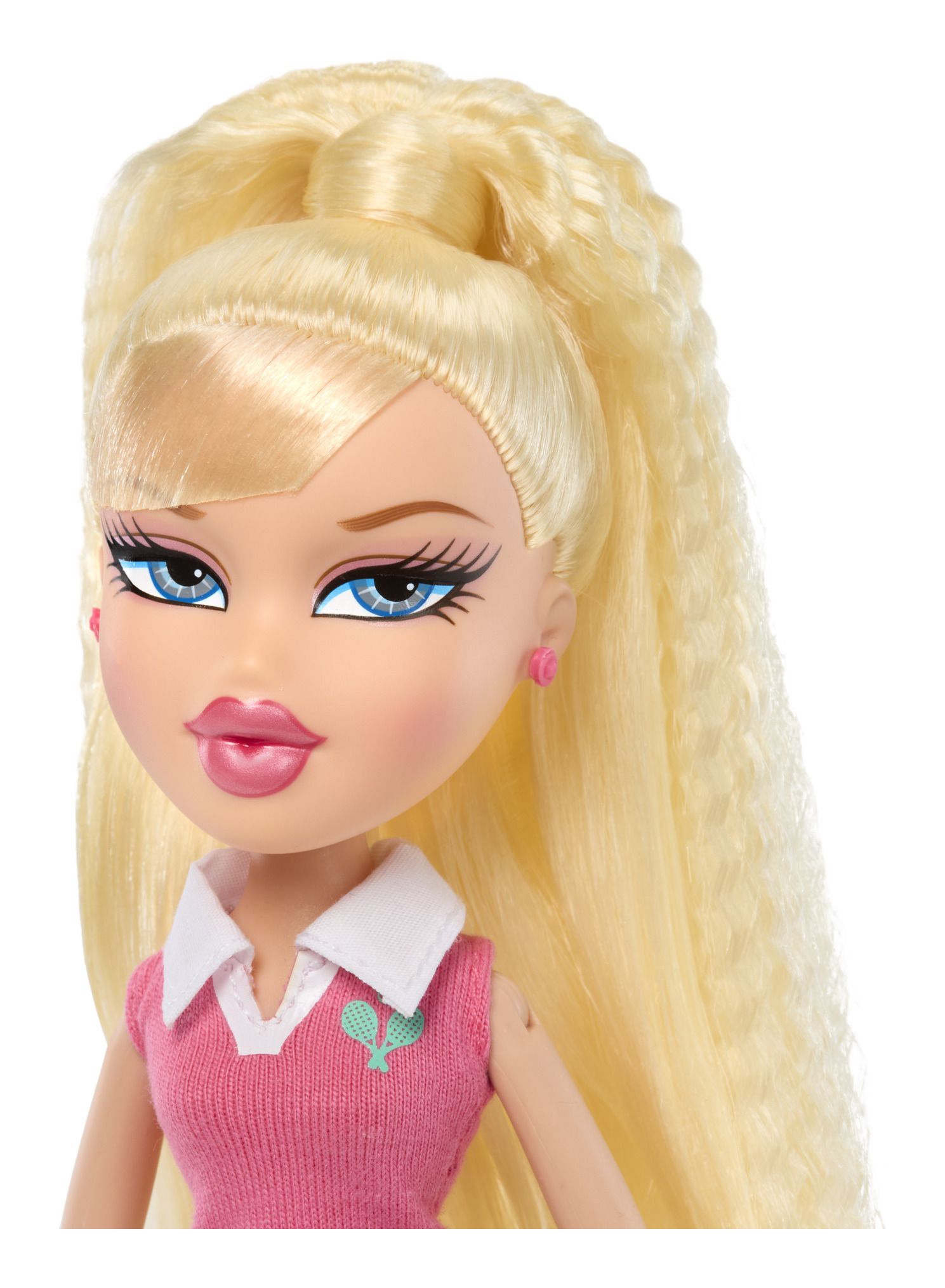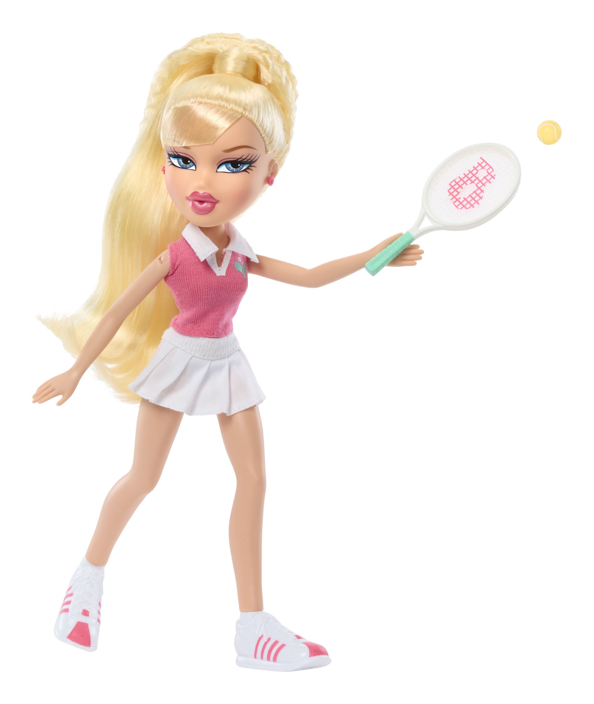 Lalka Cloe to miłośniczka gry w tenisa - jest mistrzynią odbijania i na korcie nie ma sobie równych! Modelka postawiła na stylizację, składającą się z białej spódniczki, różowej bluzki z kołnierzykiem i sportowych butów. Jej długie, blond włosy zostały spięte w kucyk, a delikatny makijaż z różowymi ustami subtelnie podkreślił urodę pięknej Cloe. Do zestawu dołączono rakietę, piłeczkę oraz złoty puchar.