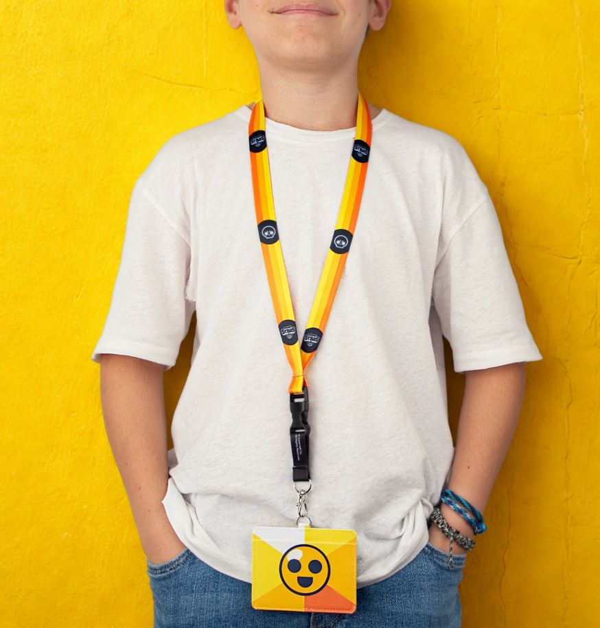 Etui na karty dla wszystkich miłośników gry Brawl Stars! Fikuśny portfelik zaprojektowany został na wzór popularnego motywu Starr Drop - jest żółtego koloru z nadrukowaną uśmiechniętą buzią na środku. Etui posiada dwie kieszonki - jedna z nich jest przezroczysta, więc z powodzeniem sprawdzi się do przechowywania legitymacji czy identyfikatora. Smycz można łatwo odpiąć, jednak doskonale służy do zakładania na szyję - jest żółto-pomarańczowego koloru z czarnymi nadrukami.