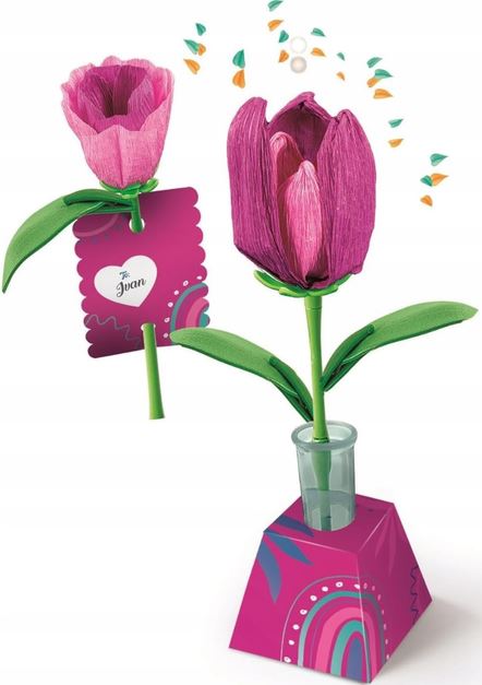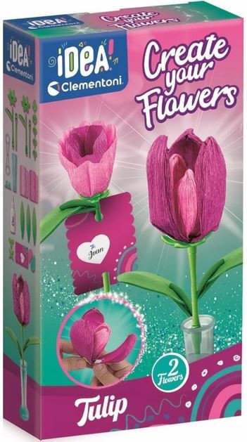 Kreatywny świat Clementoni Idea Art zaprasza do cudownej zabawy! Zestaw Mini fabryka kwiatów umożliwia na wykonanie dwóch kwiatów tulipana w intensywnych kolorach. Zestaw składa się z: