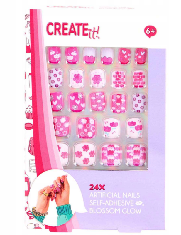 Stwórz najpiękniejsze paznokcie z samoprzylepnym zestawem do paznokci Create It!! Zestaw zawiera 24 samoprzylepnych paznokci w różowo-czerwonych barwach, z ozdobami w postaci kropek, słodkich wisienek czy serduszek! Paznokcie są łatwe w aplikacji i usuwaniu. Świetna zabawa przyjaciółek gwarantowana!
