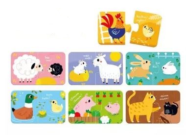 Przedstawiamy zestaw z serii Puzzle do pary - "Zwierzątka z gospodarstwa" od marki CzuCzu. Edukacyjne puzzle to doskonały pomysł na piękny i mądry prezent dla dzieci już od pierwszych miesięcy życia. Zestaw składa się z 7 układanek. Urocze grafiki zwierząt dodatkowo zachęcą małych odkrywców do złożenia układanki. Szukanie i dopasowywanie elementów rozwija spostrzegawczość, zdolności manualne i koncentrację.