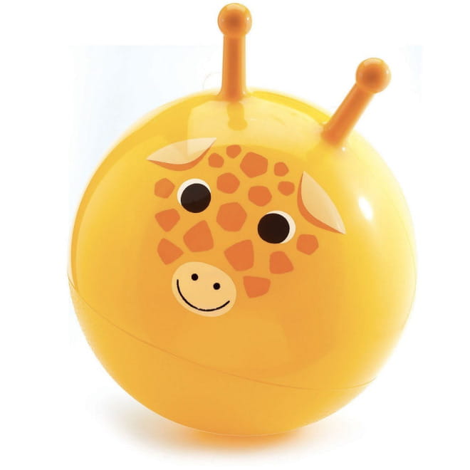 Klasyczna piłka do skakania z uchwytami na pewno sprawi radość każdemu dziecku. Maluchy uwielbiają biegać, skakać i być w ciągłym ruchu a im więcej zabawy - tym lepiej! Piłka gumowa JUMPY GIGI francuskiej marki Djeco zapewnia atrakcję w formie podskoków na kolorowej piłce, która odbija się od podłoża. Dodatkowo sama grafika znajdująca się na piłce zachęca do zabawy - cała jest żółta a na przedniej stronie widnieje podobizna głowy żyrafy. JUMPY GIGI posiada wygodny uchwyt, który zapewni dziecku równowagę.