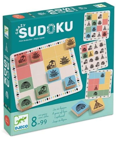 Francuska marka zabawek przedstawia odświeżoną wersję tej gry - Gra logiczna SZALONE SUDOKU kieruje się tymi samymi regułami, lecz zamiast klasycznych cyfr, na planszy należy ułożyć różne grafiki. Zestaw składa się zatem z 40. różnych rozgrywek - kart, na których zaznaczono początkowe rozmieszczenie kilki klocków w danym kolorze i konkretną grafiką. Następnie zadaniem dziecka jest wypełnienie całej planszy resztą klocków w taki sposób, aby w danym rzędzie i wierszu nie powtórzył się ten sam obrazek.