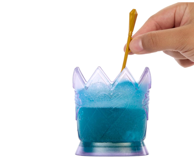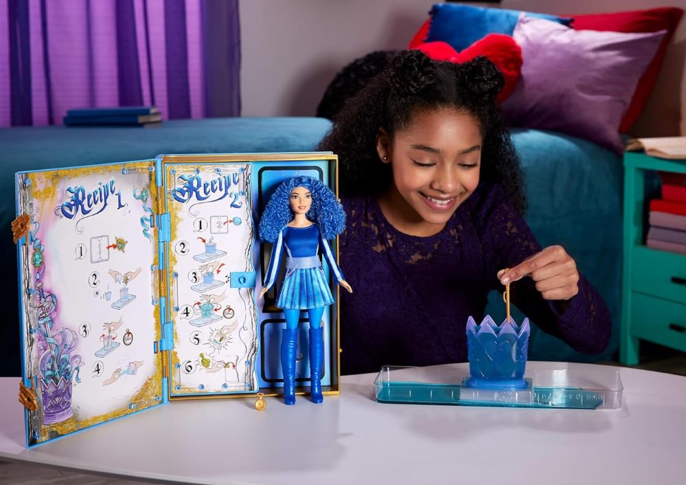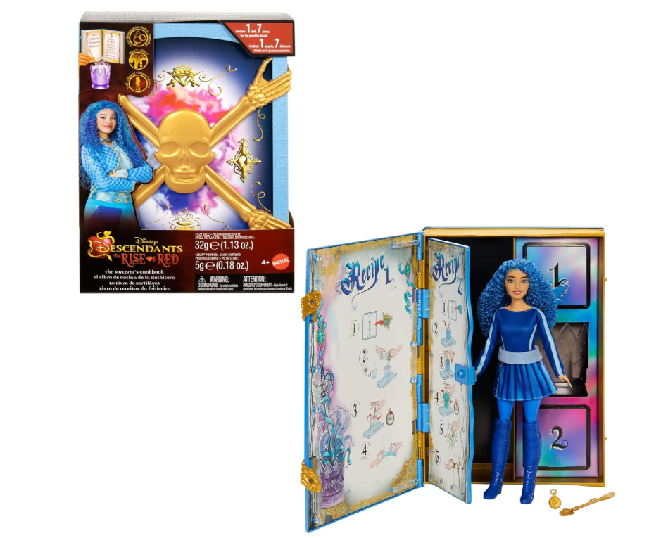 Czarodziejska Książka Kucharska Descendants to niezwykły zestaw, który przenosi dzieci w magiczny świat filmu Disneya „Następcy: Odrodzenie Czerwieni”. Po otwarciu tajemniczej księgi młodzi czarodzieje mogą korzystać z magicznych przepisów i „warzyć” zaklęcia w zaczarowanym kociołku, używając specjalnego patyczka niczym prawdziwi bohaterowie z ekranu. W trakcie zabawy powstają musujące bąbelki, kolorowy Slim i efekty zmieniające barwy, które prowadzą do największej niespodzianki ukrytej za drzwiczkami książki — pięknej lalki księżniczki Chloe Charming, córki Kopciuszka.